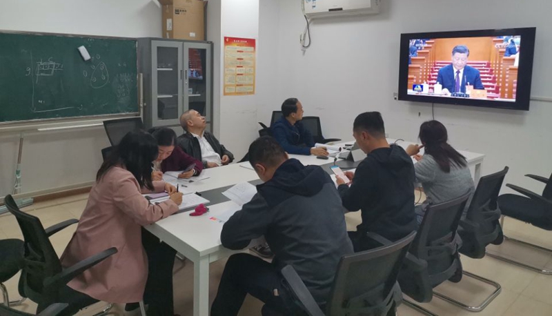 在各支部书记和委员的领学下,党员师生集中收看了中国共产党第二十次全国代表大会闭幕会实况(包括:关于十九届中央委员会报告的决议、关于十九届中央纪律检查委员会工作报告的决议、关于《中国共产党章程(修正案)》的决议),深入学习领会了习近平总书记闭幕会上所作的重要讲话精神。支部成员还集中观看了中国共产党第二十届中央政治局常委同中外记者见面会实况,对“新征程、再出发”感触很深。会上,大家还专题学习了近平总书记在参加党的二十大广西代表团讨论时的重要讲话精神。部分支部开展了《习近平谈治国理政》(第四卷)重点篇目的分享交流,部分支部学习了二十大报告双语版。围绕主题,与会同志开展深入学习研讨、分享学习体会。