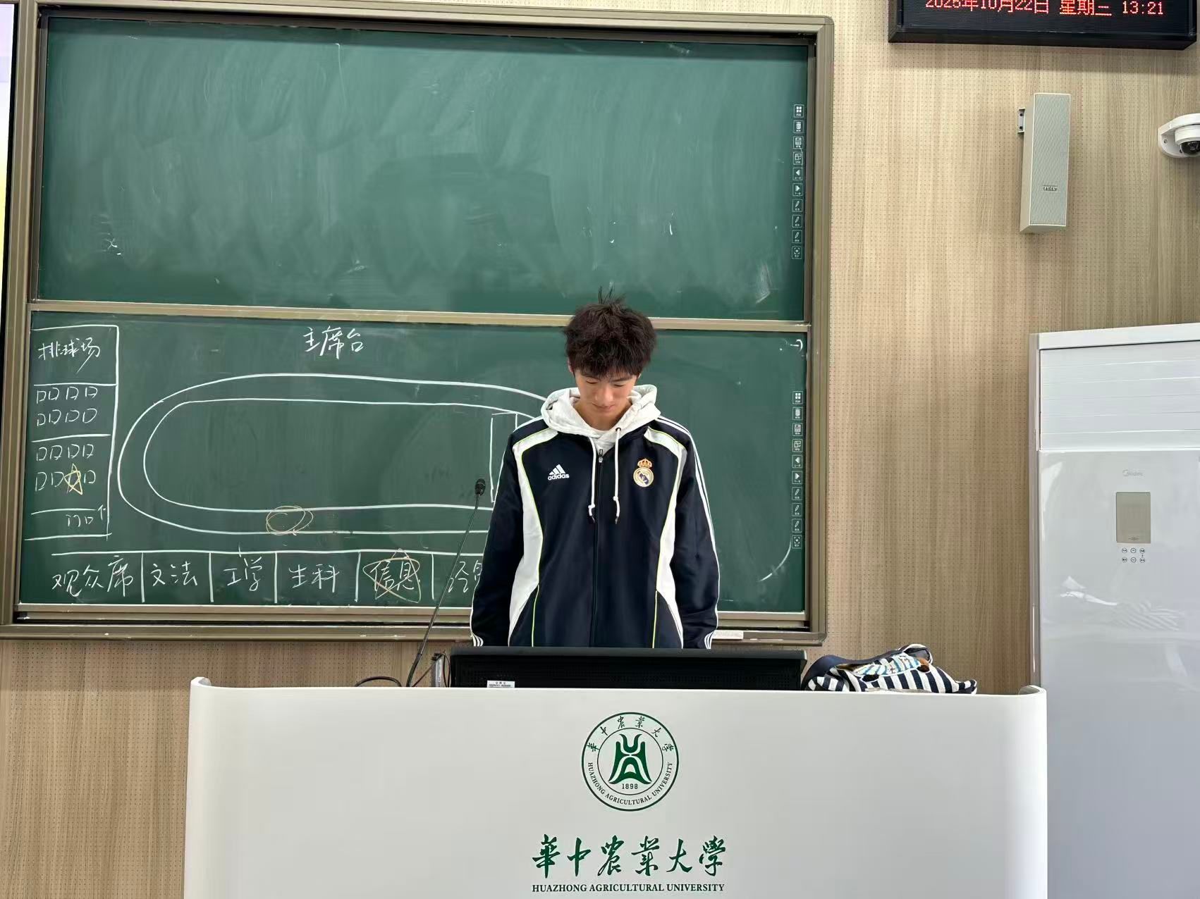 信科2503班田杰作为参赛运动员代表发言,他把赛前训练时的每一次喘息,每一点汗水比作“扎根”,扎得越深,站在跑道上就越稳,冲到终点时就越有力量。他希望大家把训练时的坚持揣在怀里,把同伴的鼓励记在心里,在赛场上尽情奔跑,全力以赴,青春无悔!